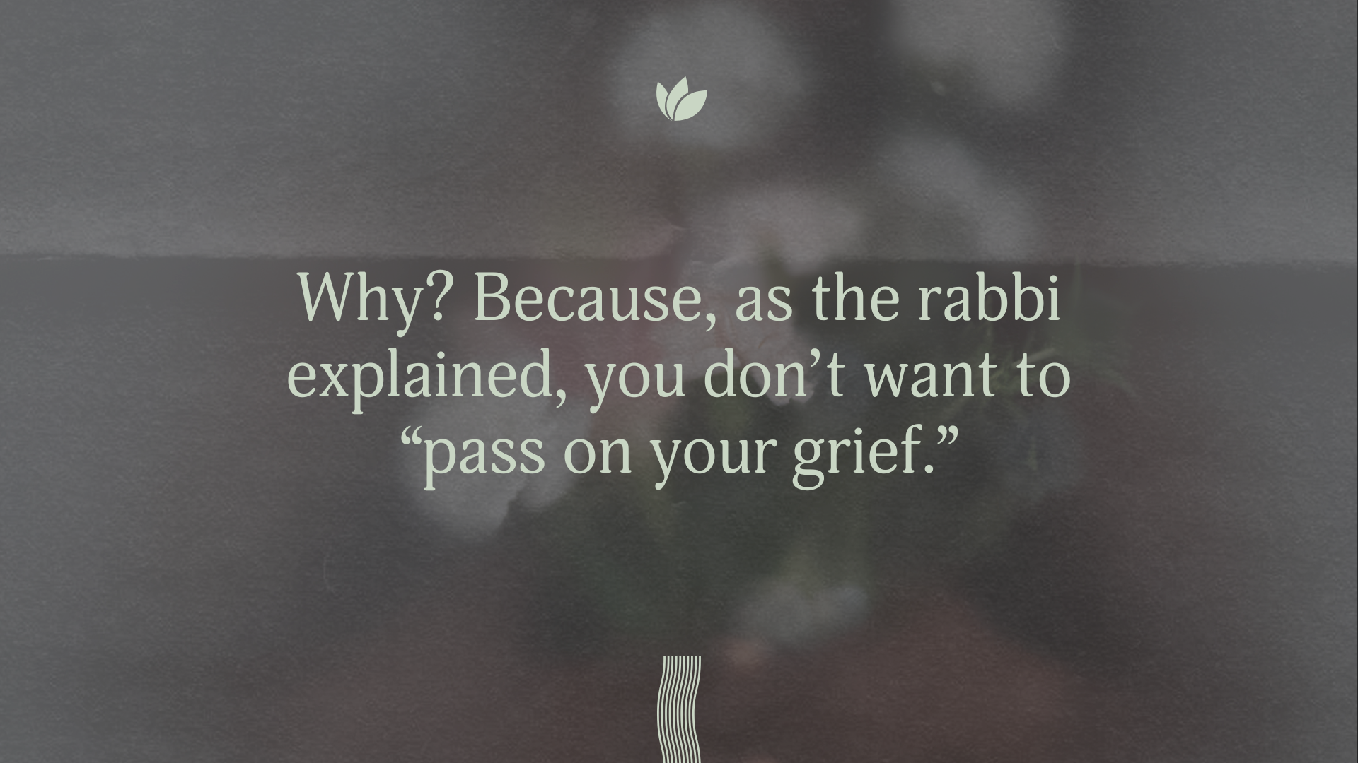 Why? Because, as the rabbi explained, you don’t want to “pass on your grief.”